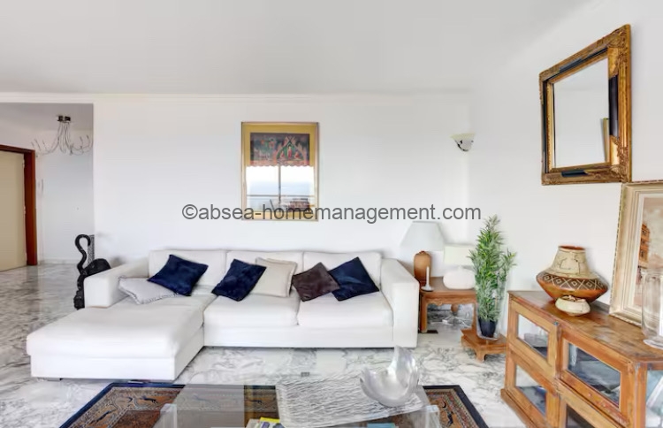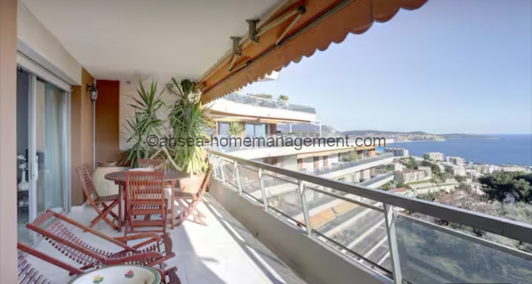 Magnifique appartement en étage élevé avec vue mer époustouflante , 2 chambres , 2 grands lits , 2 salles de bain , résidence de standing avec piscine et tennis , sécurisée , restaurant .Appartement traversant au calme etensoleillé