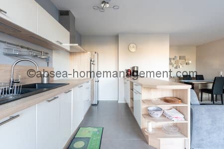 Cuisine entièrement équipée ouverte sur le salon salle à manger .Belle chambre avec dressing et salle de douche à l’italienne .WC séparé , garage en sous sol fermé.
