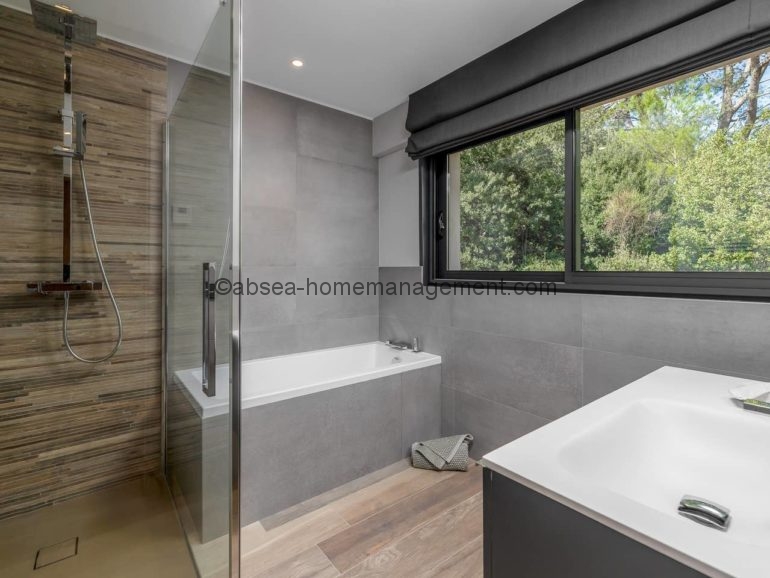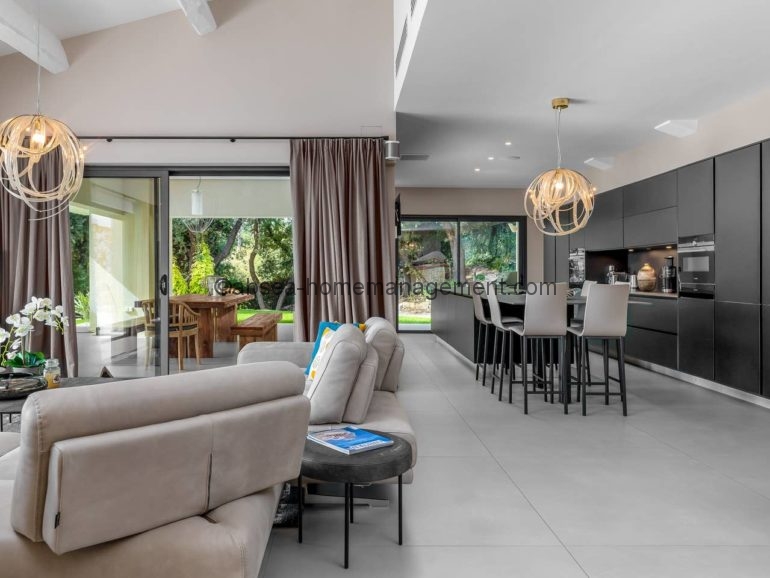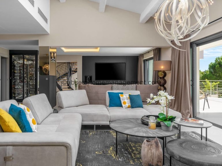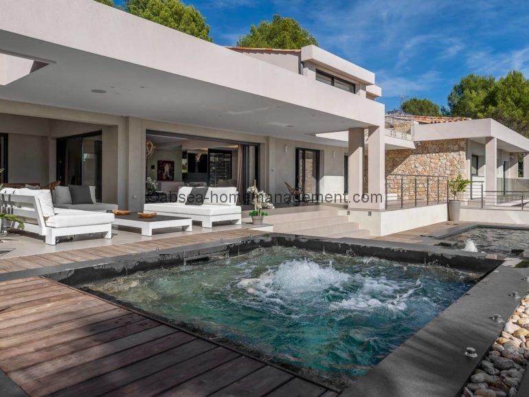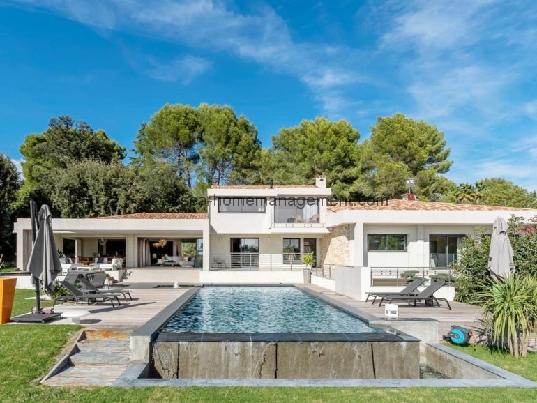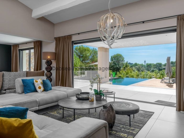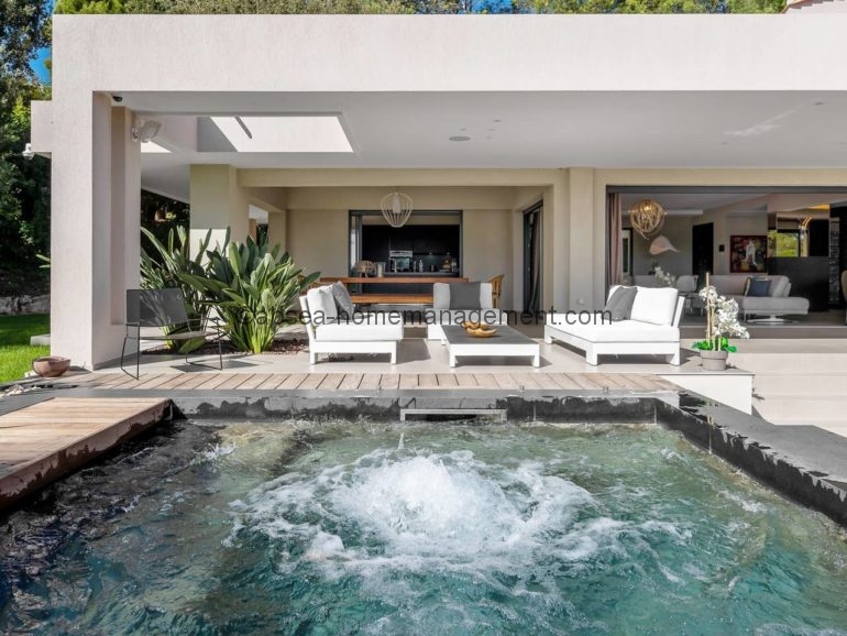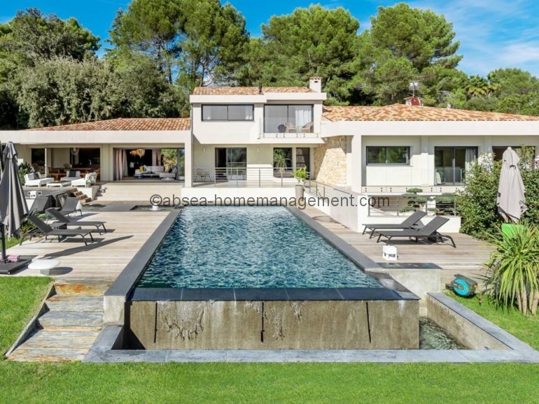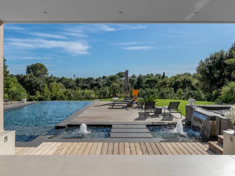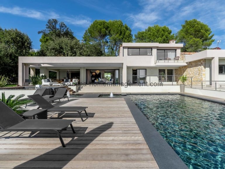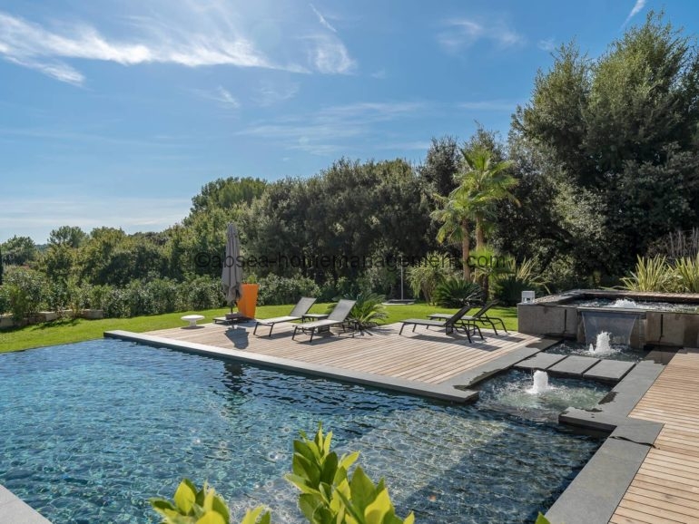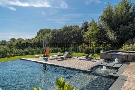 Venez vous relaxer sur la cote d’azur avec comme pied à terre cette magnifique villa contemporaine neuve de 300 m2 dans domaine avec piscine privée .6 chambres dont 5 suites toutes équipées de salle de bain .2 grands salons , une grande cuisine ultra moderne toute équipée, le tout ouvert sur une grande terrasse .Le tout aménagé et décoré avec des matériaux et équipements haut de gamme Vue sur la piscine, le Jacuzzi et le jardin arboré de 2700m2. Acces Canal plus et Netflix .